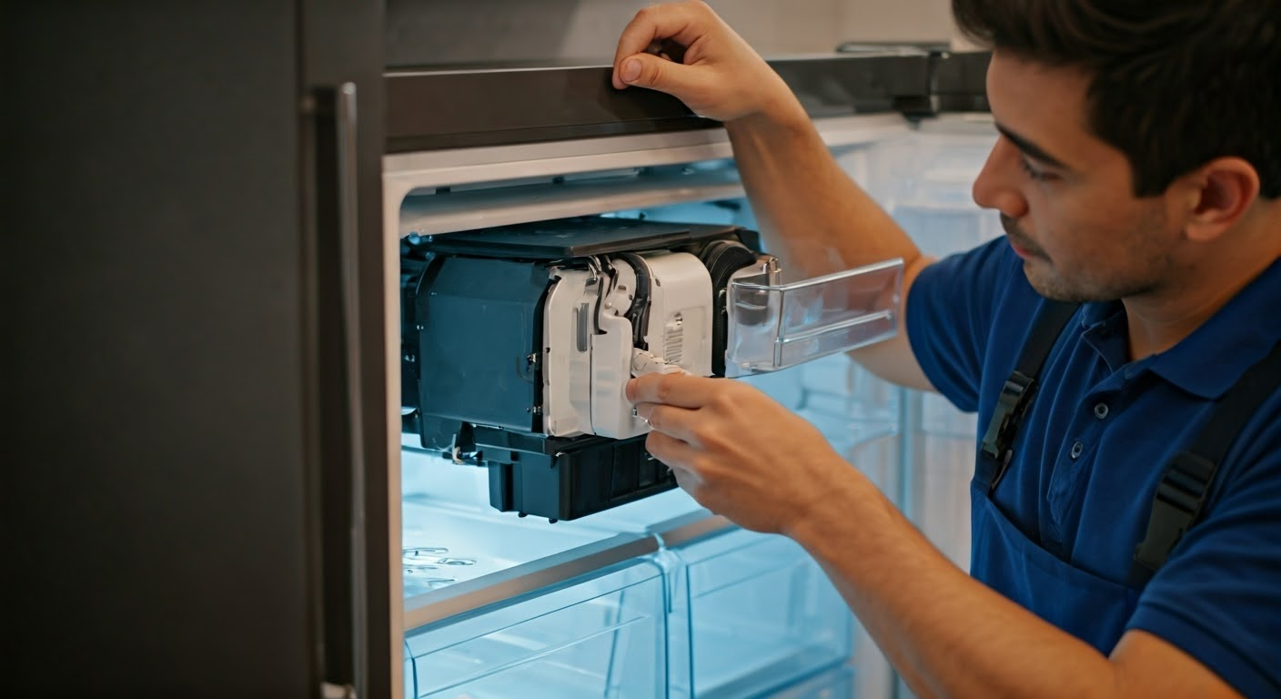 • Ice maker not producing ice – Often caused by a frozen water supply line, clogged water filter, or faulty water inlet valve.